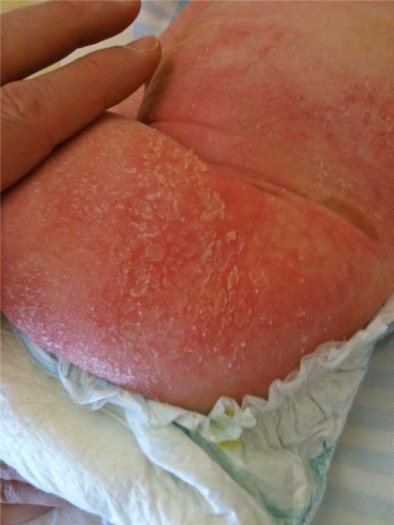 l У младенцев (до 2 лет): поражаются щеки, лоб, кожа становится сухой, покрасневшей, появляются зуд и мокнущие участки. Часто заметны шелушение кожи и образование корочек на пораженных участках.